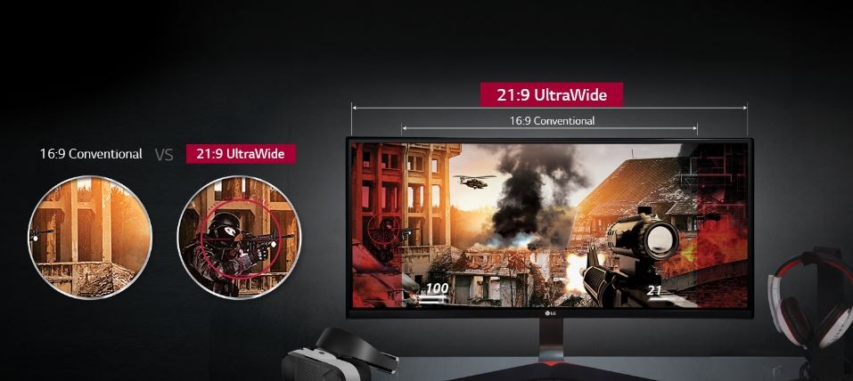 เล่นเกมได้สะใจกับหน้าจอ34นิ้ว 21:9 อัลตร้าไวด์ ด้วยหน้าจอที่โค้งรับกับสายตา, ผู้เล่นสามารถมองเห็นในทุกพื้นที่ ที่หน้าจอในอัตราส่วน 16:9 ไม่สามารถมองเห็นได้ และยังเป็นผู้เล่นที่ชนะด้วยการตอบสนองอย่างรวดเร็วได้อีกด้วย |